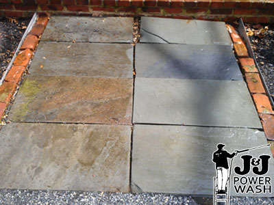 I often compare cleaning an area of flagstone to mowing grass. Sure, you can use a weedwacker to clean any size grass area but even the most skilled person will have some areas of grass higher than others. A lawn mower is quicker and guarantees all the grass will be the same length. J&J Power Wash offers commercial flagstone pressure washing services. No matter how dirty your flagstone is we can help. To set up a free estimate call us at 215-703-8306 or fill out our online form. Click on the images below to enlarge them or visit our portfolio page for additional before and after pictures.