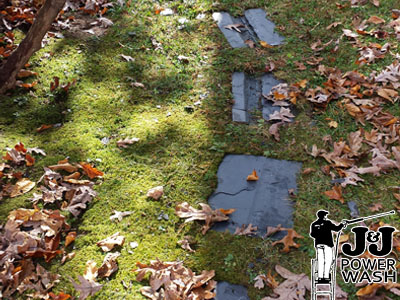 Similar to pressure washing concrete sidewalks and concrete patios, you want to use an environmentally friendly detergent to remove stains on flagstone and bring back the original color of the stone. A combination of bleach, water, and soap normally does the trick. If you are doing research on the Internet you may come across some pressure washing contractors that talk about muriatic acid or hydrocloric acid. We try to use acids as little as possible in our line of work especially with flagstone walkways and patios, not because it would not get the job done but because it simply is not necessary. Additionally, acids can harm nearby landscaping.